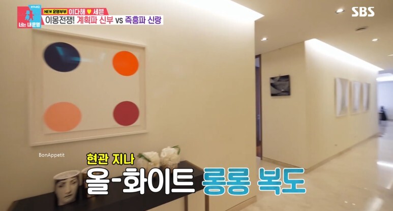 결혼 5일 전 신혼여행 준비에 나선 이다해와 세븐의 모습이 그려졌습니다. 이다해는 고급 호텔처럼 고급스럽게 꾸며진 집에서 반려견 그레이트와 행복한 시간을 보냈습니다. 이다해 집은 화이트 앤 우드 톤으로 깔끔하게 꾸며져 있었습니다. 예술품이 장식된 현관부터 긴 복도를 지나 들어오면 큼직한 그림과 깔끔한 가구로 꾸며진 거실로 등장했습니다.